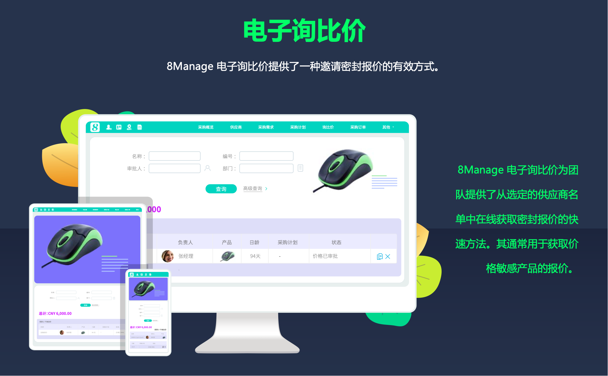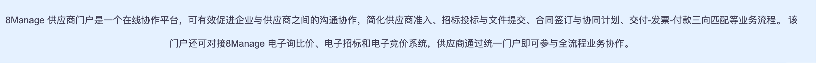 8Manage SRM供应商关系管理系统通过集中所有数据,提供采购需求、供应商和产品的实时可见性,帮助客户了解库存流量、何时补充库存,以及增加利润的机会,同时与供应商建立长期关系并进行监控。最终帮助客户达到降低成本、提高质量并发展与战略供应商的关系的目标。