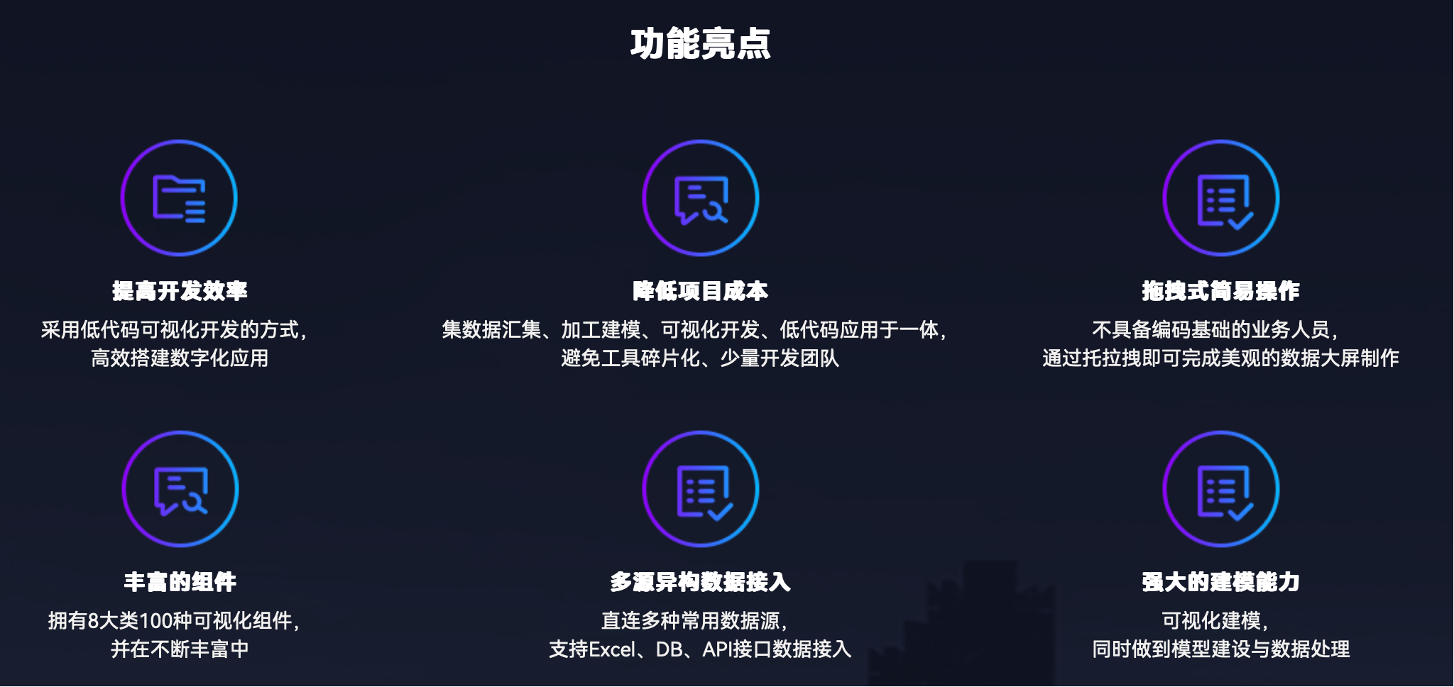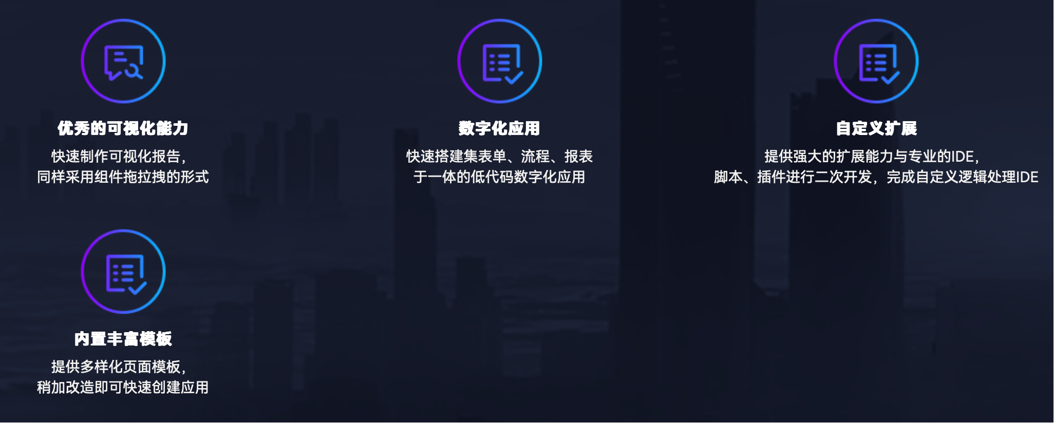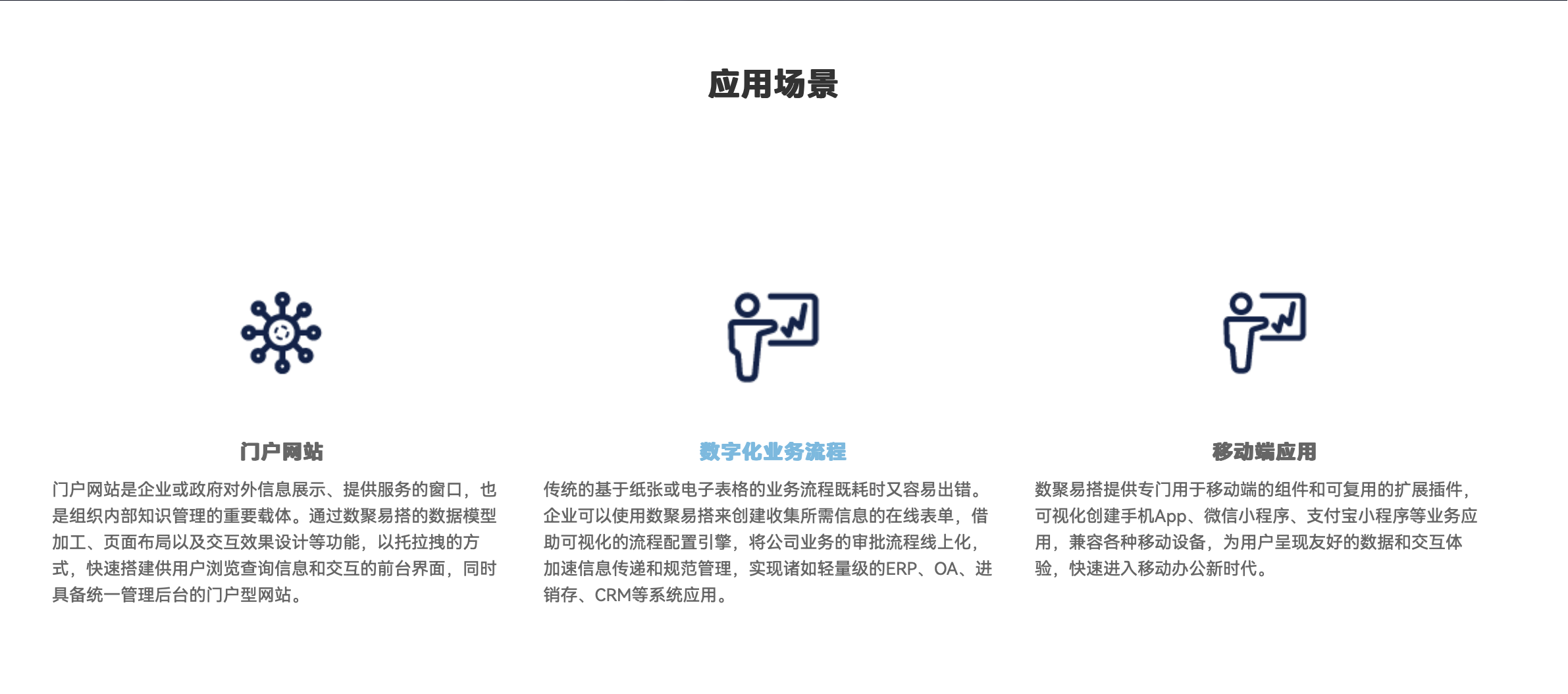 数聚易搭®E-Bui是一款基于数聚易视增加了自由页面设计和流程引擎的低代码数字化应用开发平台,在数据与模型的双驱动下,支持以“所见即所得”的方式制作任意个性化的页面,结合可视化的流程配置,可快速搭建各类个性化业务应用系统,极大地减少研发投入、缩短交付周期、降低实施成本。 数聚易搭E-Bui以数据为中心、提供数据汇集、加工、可视化、报表、表单、流程、应用搭建一站式平台,包含BI、报表工具、可视化ETL、低代码应用搭建。