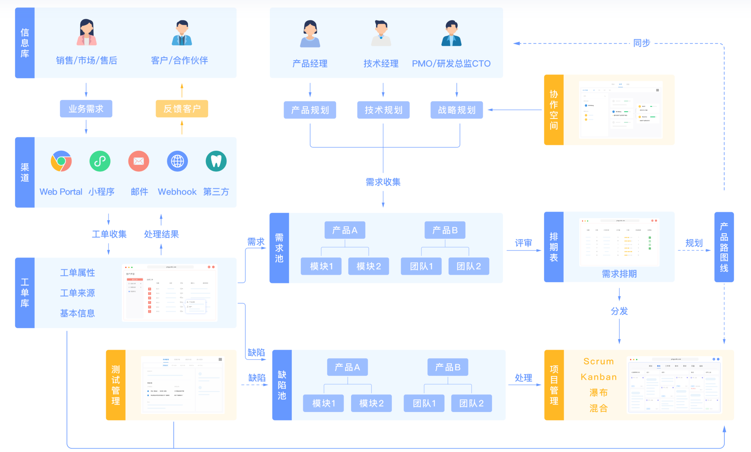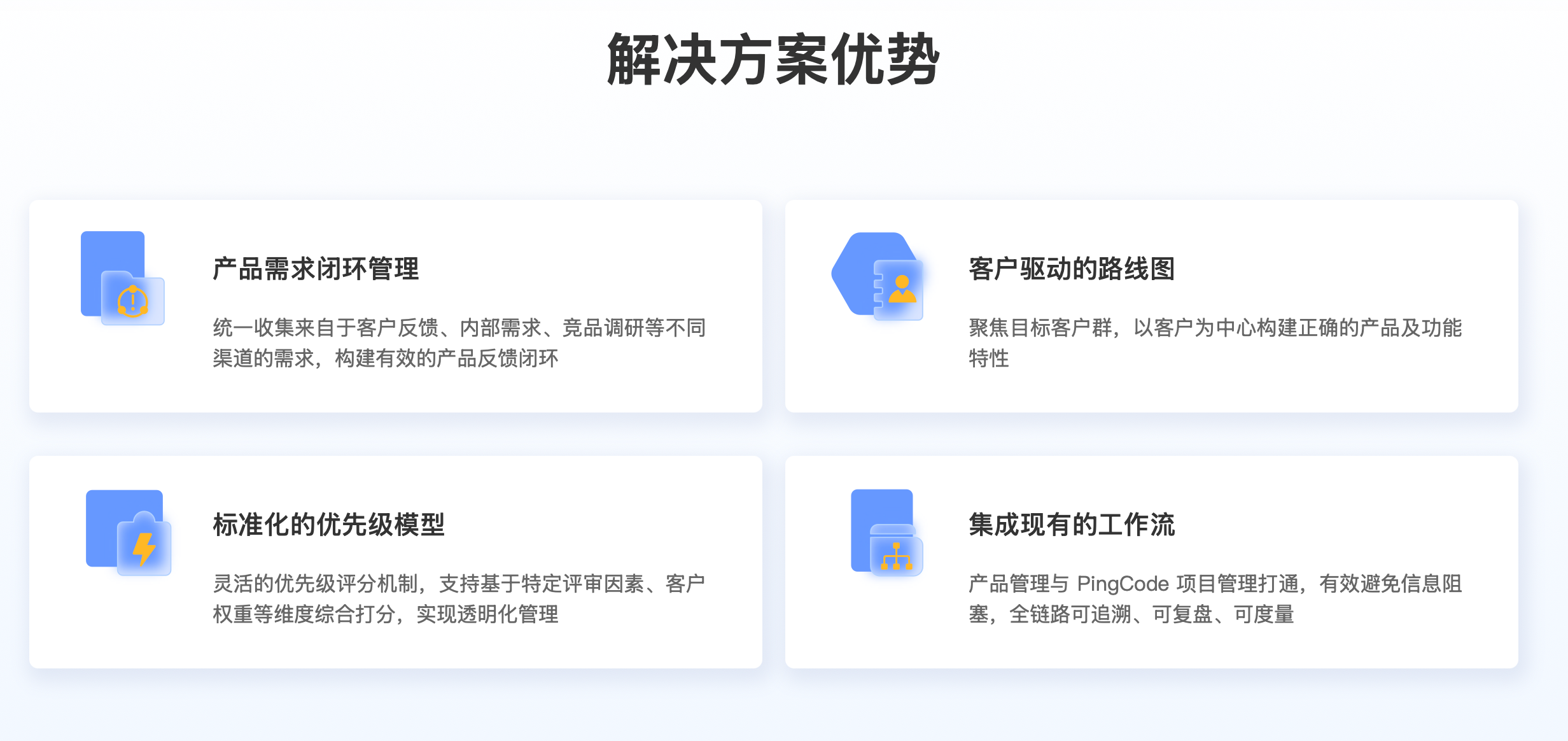 PingCode 产品管理打通需求收集、分析、评审、规划、流转、交付全链路,有效连接客户、业务、产研;帮助产品经理全面理解客户需求、科学规划产品优先级、构建连接所有人的产品路线图,帮助企业构建以客户为中心的价值交付闭环