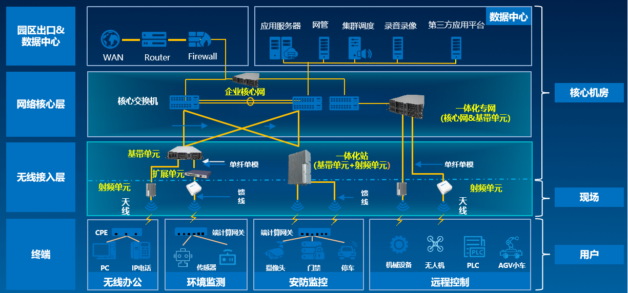 随着数字化转型的深入,移动通信技术正与人工智能、物联网、云计算、大数据、边缘计算等技术深度融合,加速各行各业向数字化、网络化、智能化转型,开启数字经济的新时代。浪潮新一代通信移动专网基于3GPP协议内定义的标准化接口设计并互联互通,采用先进开放的架构平台、灵活智能的组网方案,设计研发支持不同厂家的射频单元、CU/DU分离、云原生和Option 2的架构,支持AES、Snow3G、ZUCC等三种加密和完保算法,支持E2接口和SON(自组织网络)等功能,具备云化、简单、智能、柔性等特点,提供统一云网管理运维平台,为行业客户带来高质量高安全的业务体验。